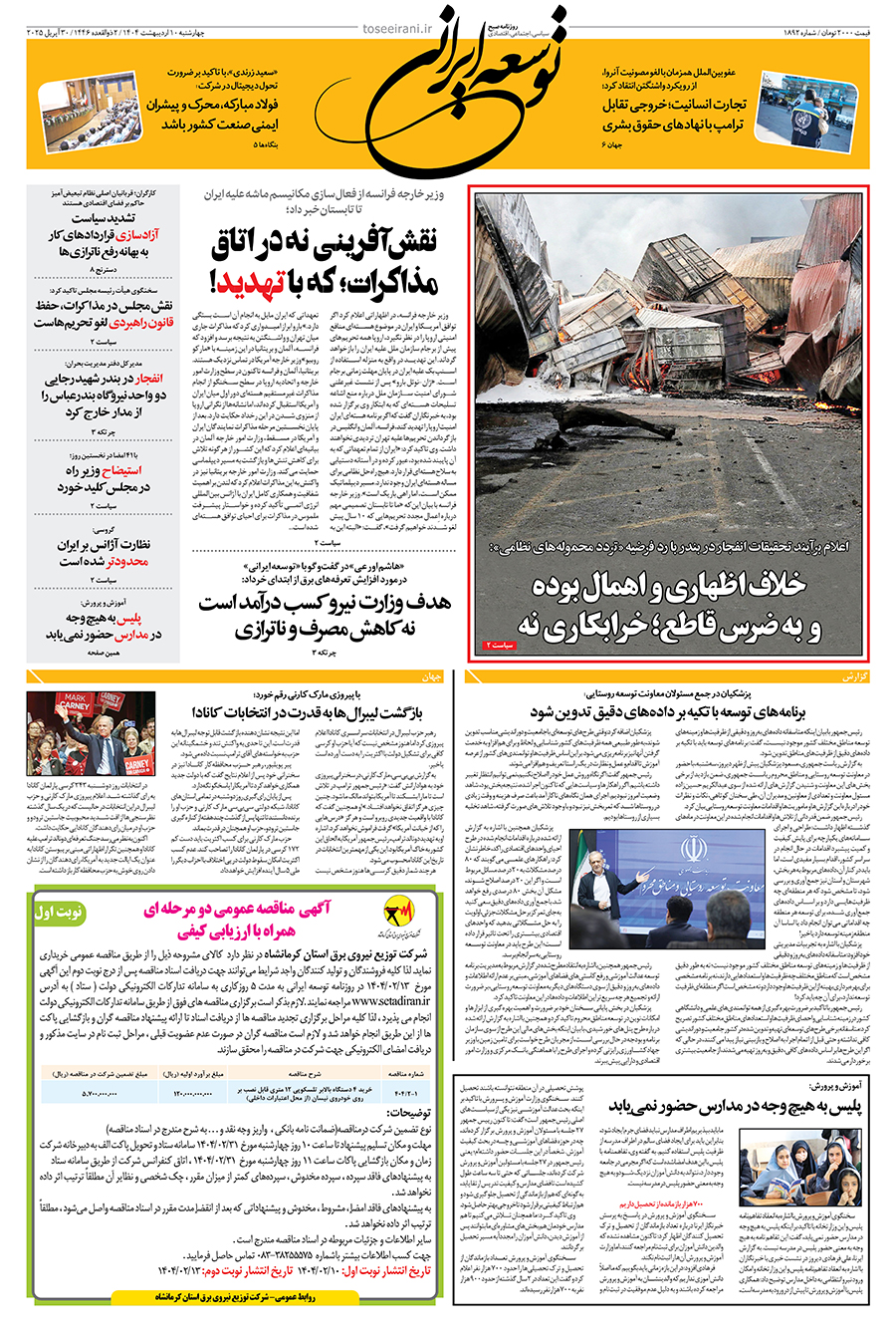 9 اردیبهشت 1404شماره 1891