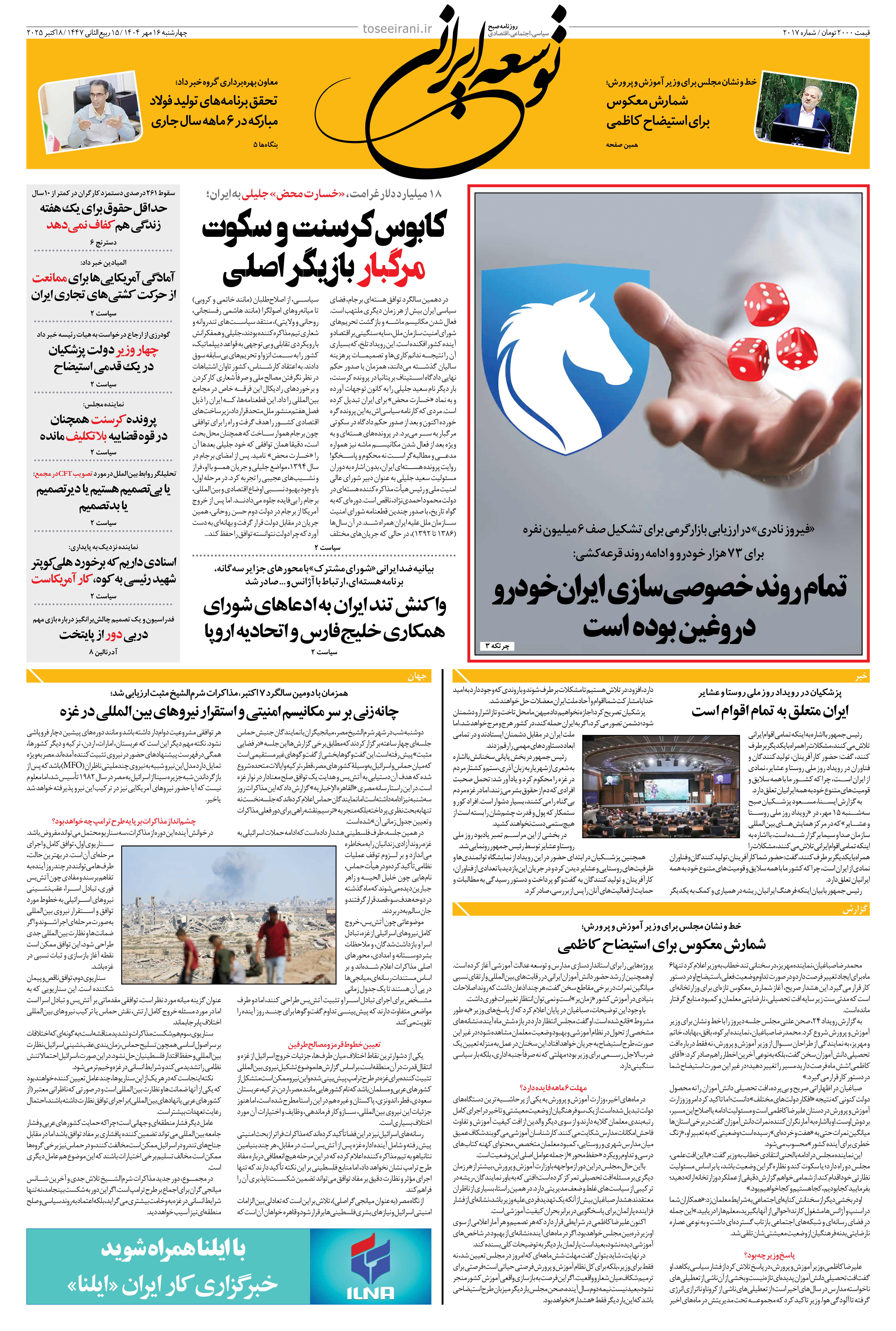 چهارشنبه ۱۶ مهر ۱۴۰۴ شماره ۲۰۱۷