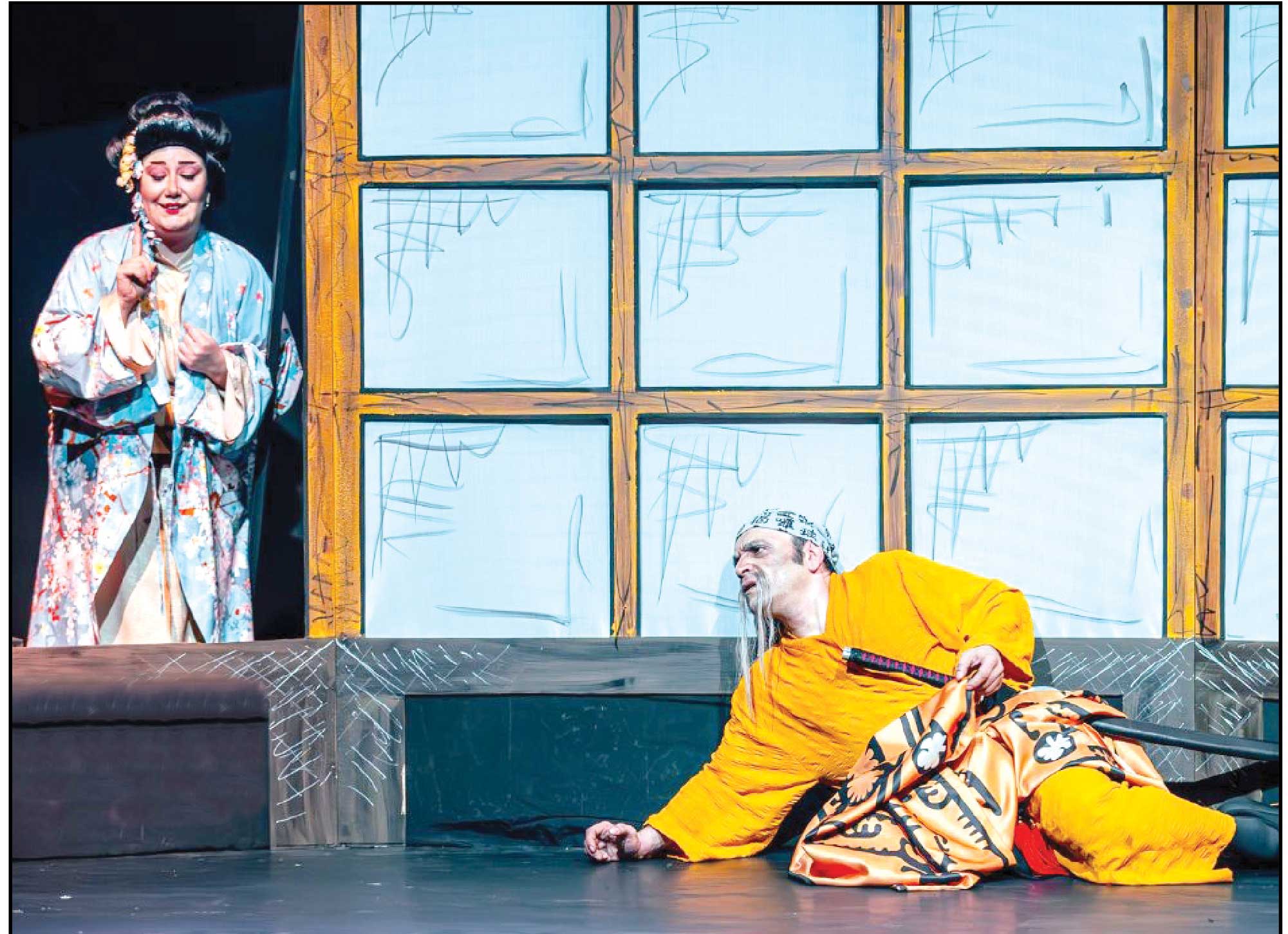 در این میان زبان ژاپنی با نوعی دفرمهشدن و تلفیق با زبان فارسی و ترکی، به ترکیب تازهای از ساختار نحوی میرسد که به واقع کمیک است. البته باید این نکته را اضافه کرد که در بعضی صحنهها این زبان التقاطی، چندان که باید نمیخنداند و بدل به تلاشی عبث میشود که گروه اجرایی به کار گرفته تا بر ملاحت فضای کلی نمایش بیفزاید، اما موفق نشده است.