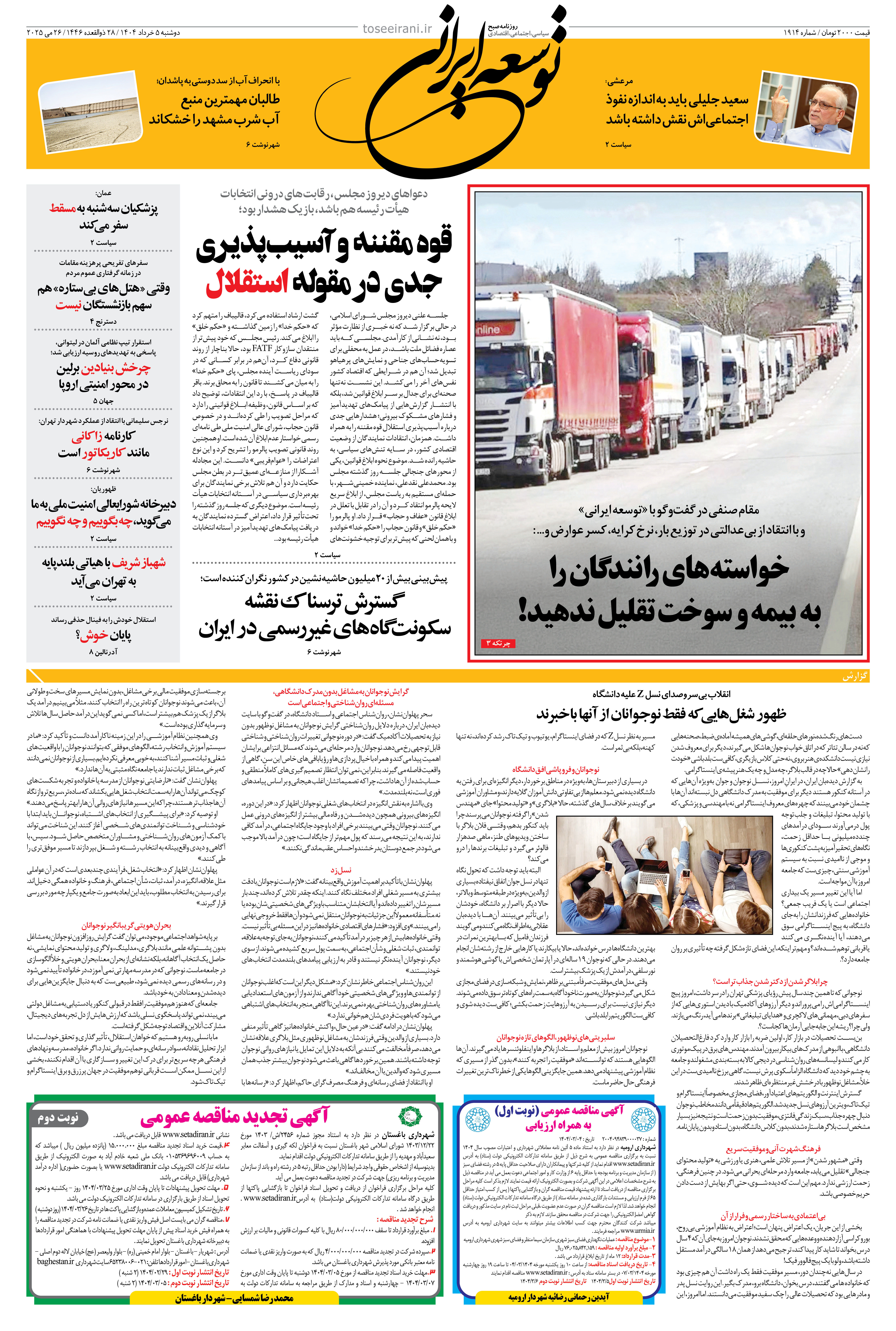 چهارشنبه 7 خرداد 1404 شماره 1916